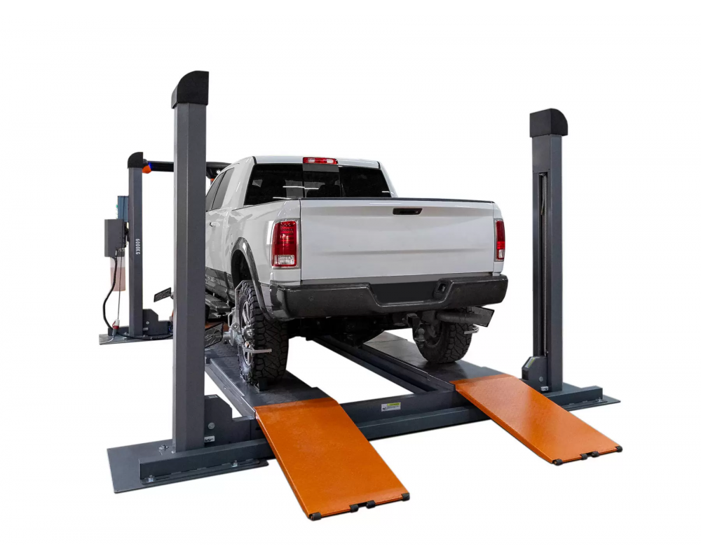 Подъёмник позволяет проводить диагностику, обслуживание и ремонт легковых автомобилей и небольших грузовиков, в частности, проводить работы по измерению и регулировке углов установки колёс.